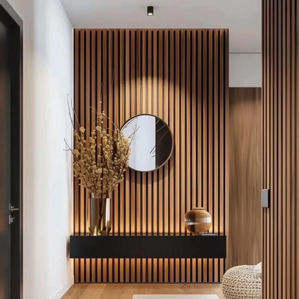 Our wood veneer acoustic slat wall panels are a stylish and functional addition to any space. The 1mm natural wood veneer comes in a rich palette of colors, including warm oak,elegant walnut,classic ash, and modern grey oak, allowing you to match any interior design. Combined with a high-density MDF core and acoustic felt backing, these panels deliver superior sound absorption while adding depth and texture to your walls. Easy to install and durable, they are perfect for creating a sophisticated, noise-free environment in living rooms, offices, and commercial spaces.
